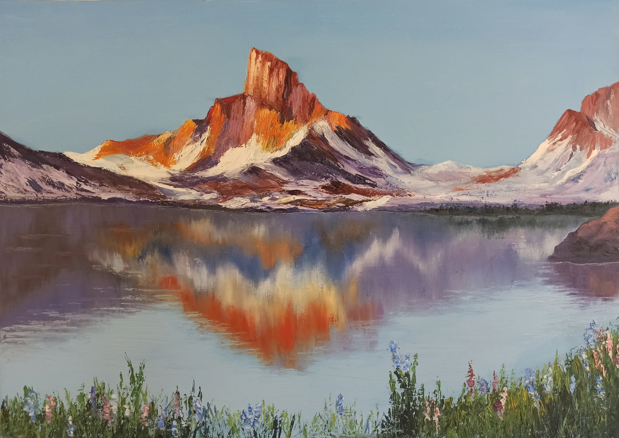 Ölfarbe 2023 | 70 x 50 cmVERA GRAF|BERGSEE„Eine atemberaubende Gebirgslandschaft, die die Sehnsucht