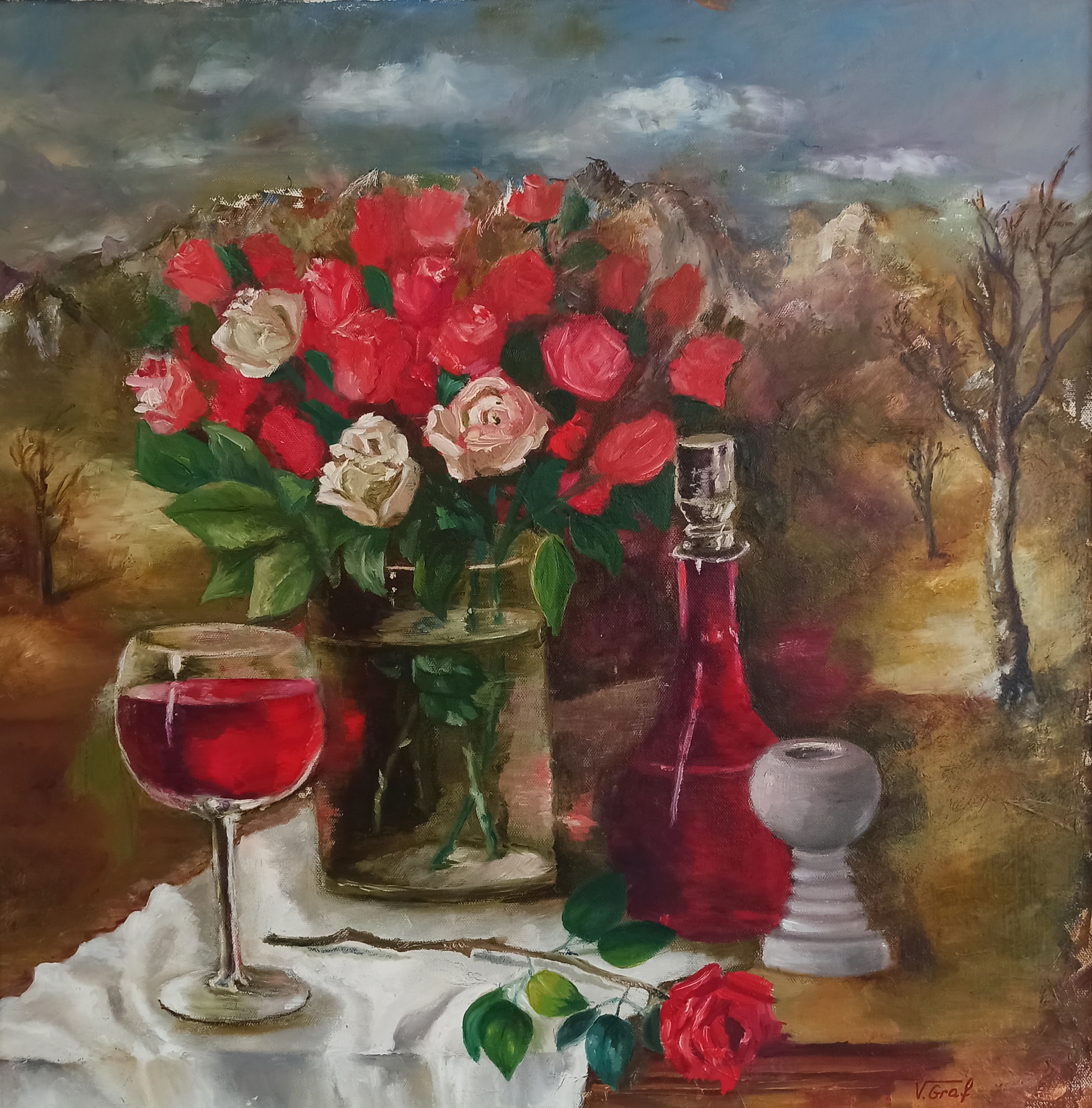 Ölfarbe 2024 | 60 x 60 cm | Palma (Spanien), Zug (Schweiz)VERA GRAF|GLÜCKSMOMENTE„Eine Komposition, die eine Atmosphäre der Stille, die Schönheit des Augenblicks, die Gefühle von romantischer